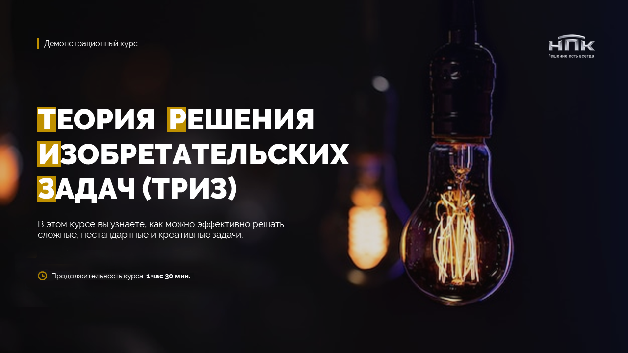 Это вводный курс, который будет полезен всем, кто хочет понять, что такое ТРИЗ, и познакомиться с 2-мя важными методами: ИКР и Противоречие.
