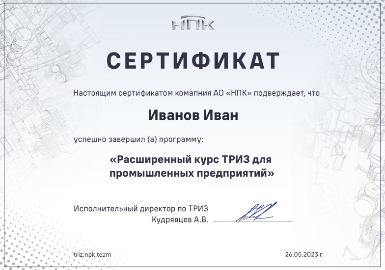 Наши сотрудники сертифицированы Международной Ассоциацией ТРИЗ Matriz.org и имеют возможность проводить сертификацию
